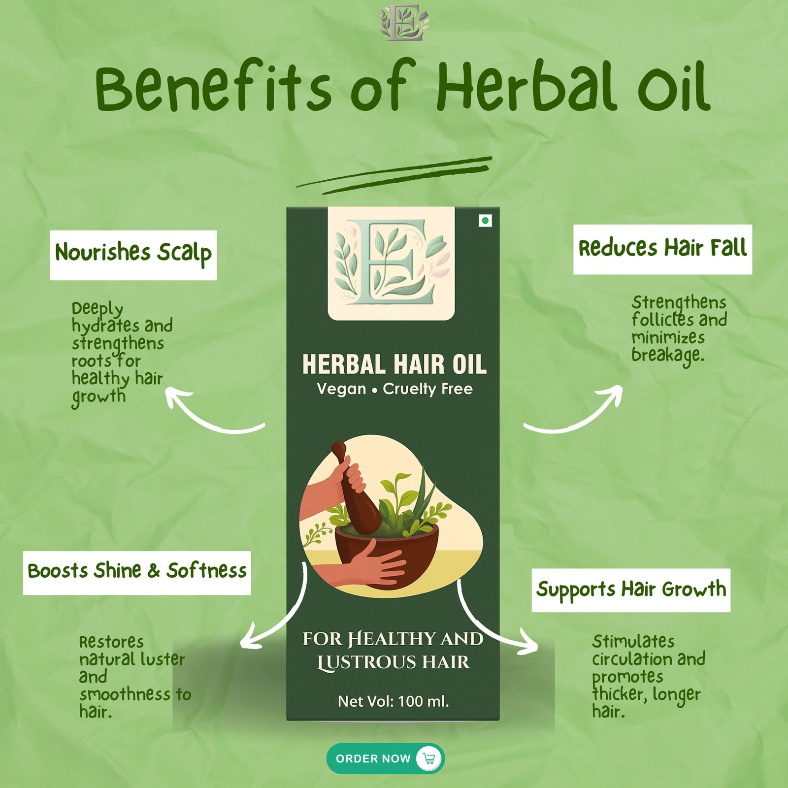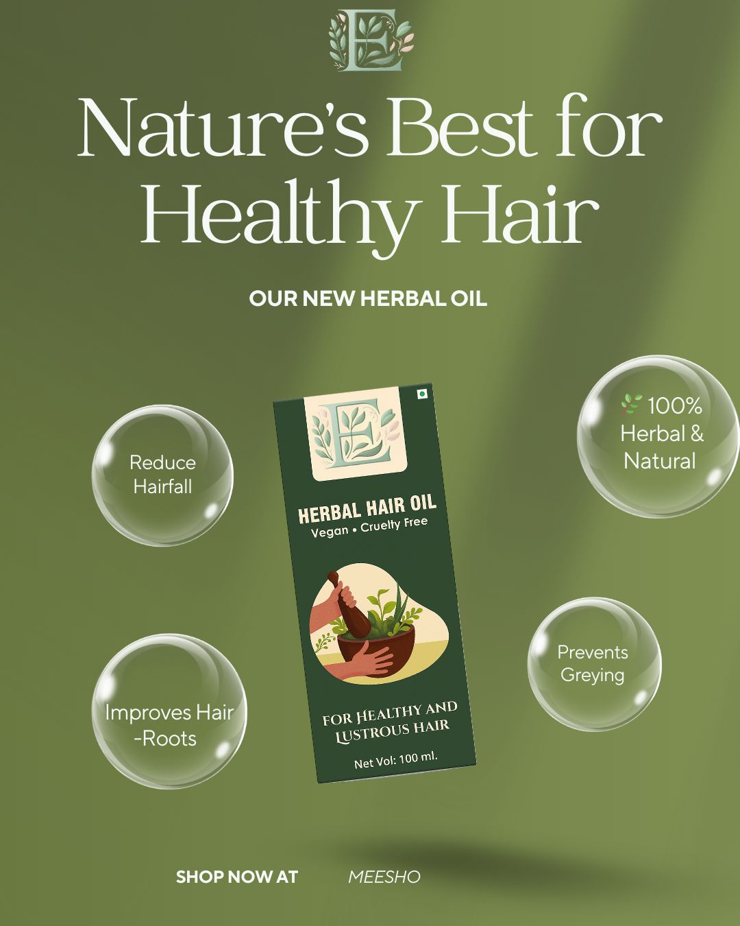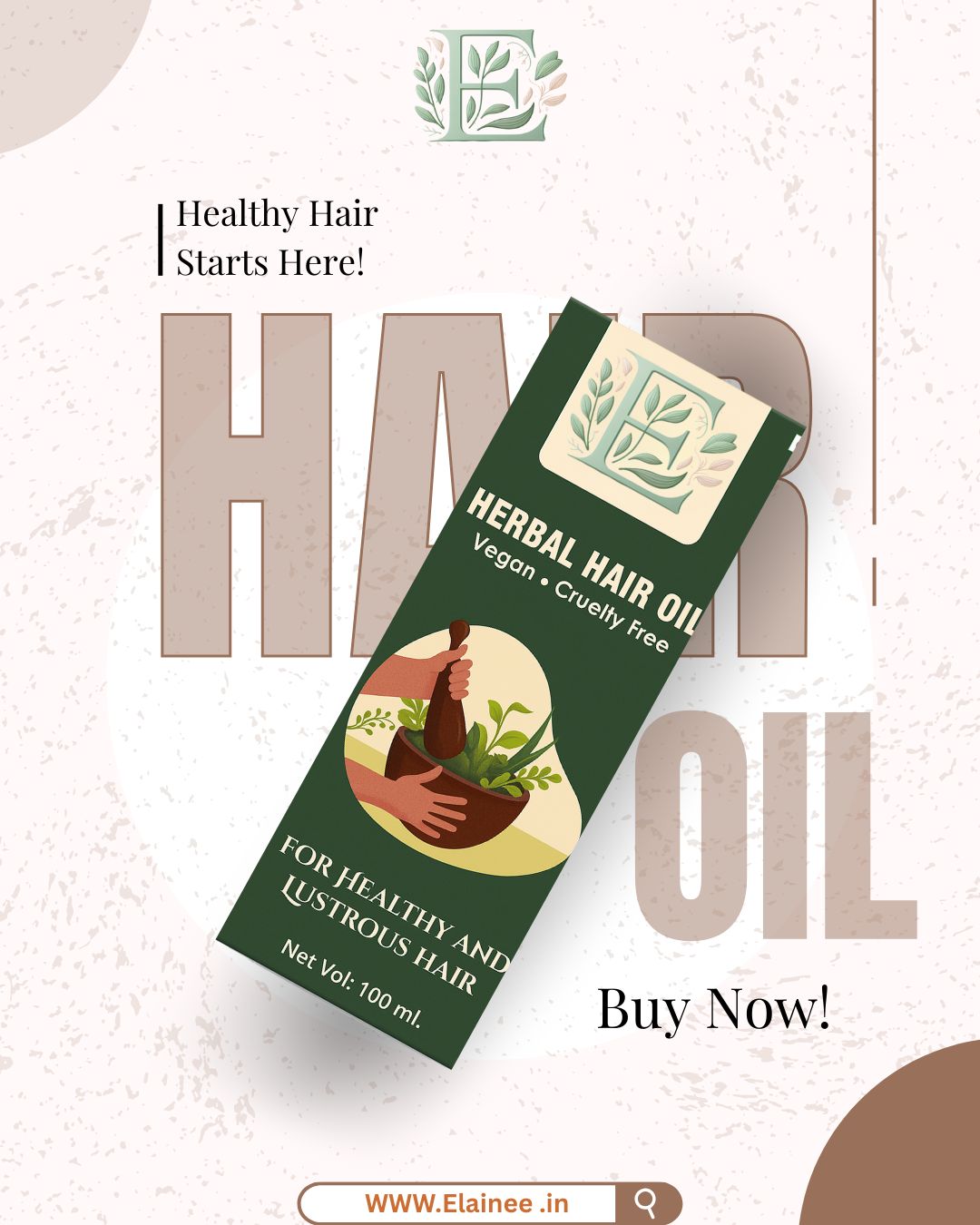 Elainee Herbal Hair Oil (100ml) is a premium Ayurvedic formulation enriched with natural herbs and essential oils. Crafted with the goodness of neem, amla, bhringraj, hibiscus, and coconut oil, it deeply penetrates the scalp to repair damaged roots, reduce dandruff, and strengthen hair from within.