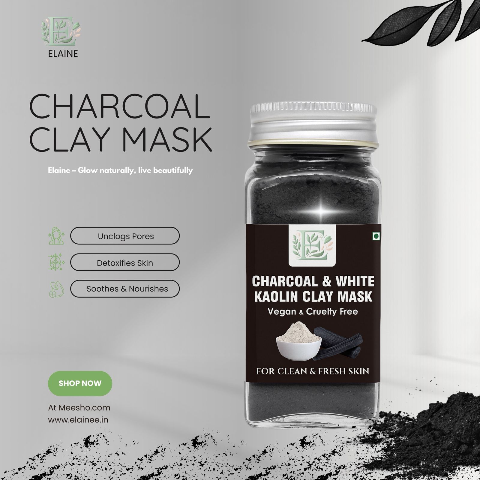 Discover the natural power of Elaine Charcoal & White Kaolin Clay Mask, crafted to give you fresh, clean, and radiant skin. This herbal face mask combines the detoxifying properties of activated charcoal with the gentle cleansing benefits of white kaolin clay.